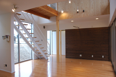 | リビングテラスからLDKを見る。板塀がリビングへ伸びる。 | |||||||||||||||||||||||||||||||||||||||||||||||||||